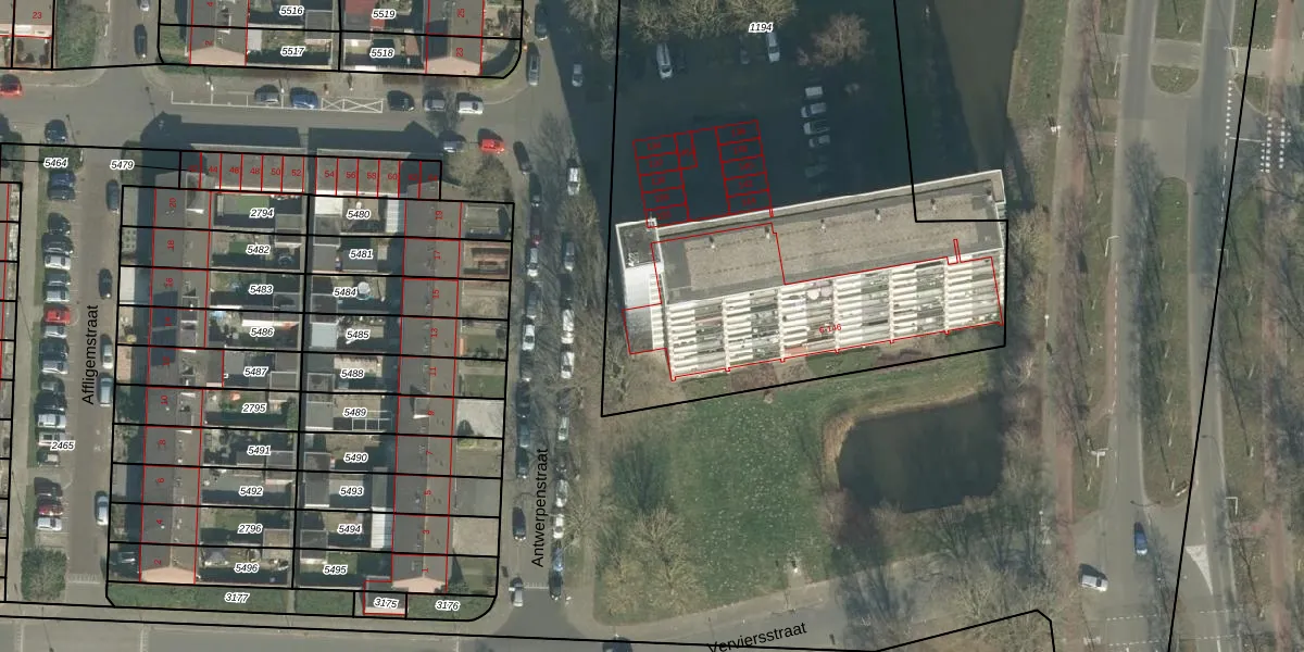 Het perceel waarop Antwerpenstraat 118 staat heeft een oppervlakte van 3534 m². Dit is een zeer groot perceel. De perceeloppervlakte wordt geregistreerd door het Kadaster. Gedetailleerde informatie over de maten van dit perceel kunt u vinden in het rapport Kadastrale kaart met maatvoering van Antwerpenstraat 118.
