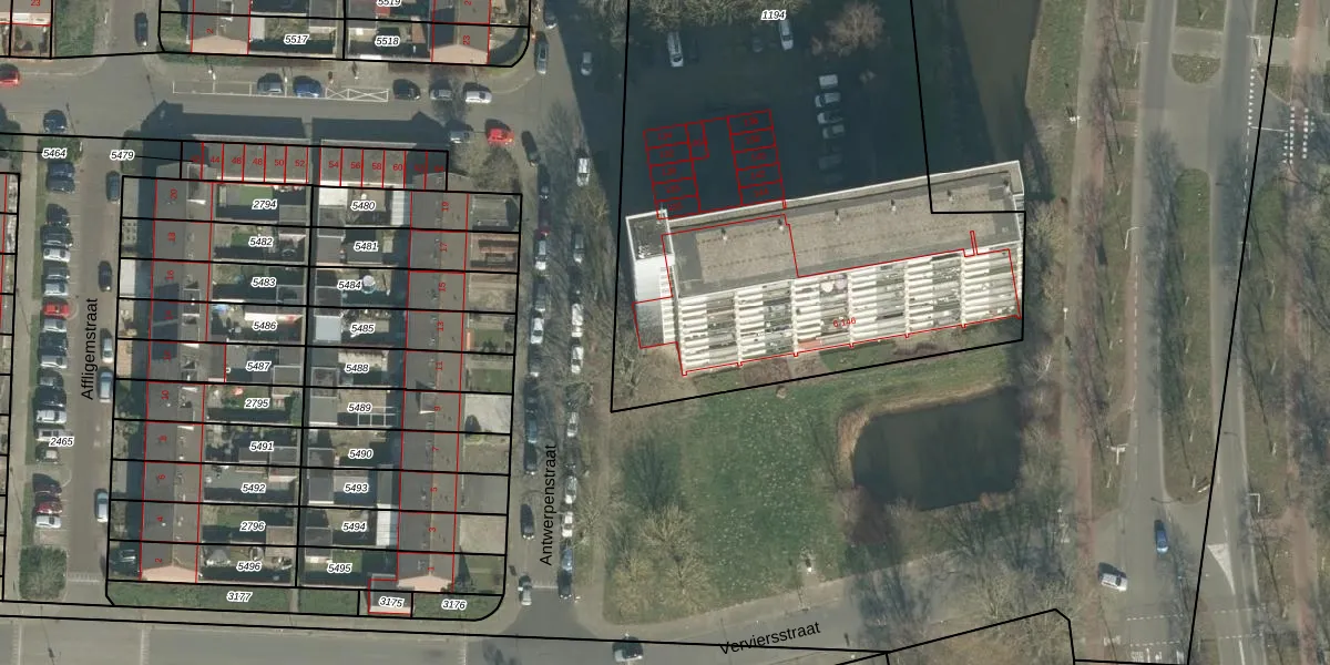 Het perceel waarop Antwerpenstraat 120 staat heeft een oppervlakte van 3534 m². Dit is een zeer groot perceel. De perceeloppervlakte wordt geregistreerd door het Kadaster. Gedetailleerde informatie over de maten van dit perceel kunt u vinden in het rapport Kadastrale kaart met maatvoering van Antwerpenstraat 120.