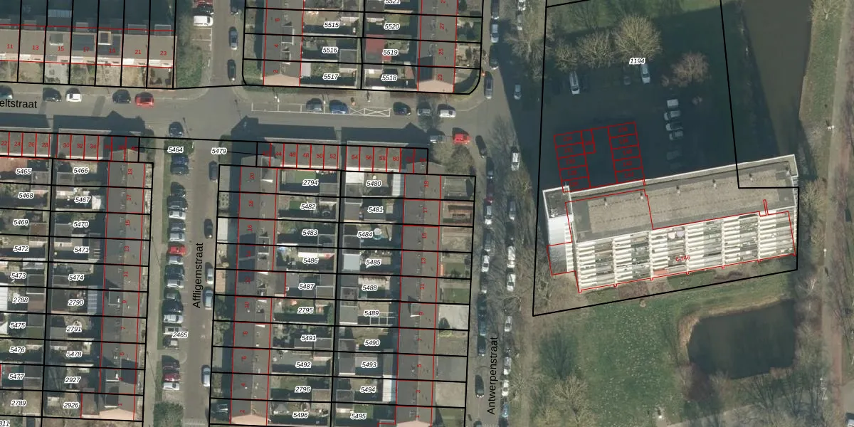 Gebruik de zoekbalk of klik op een perceel voor informatie over de adressen binnen dit perceel.