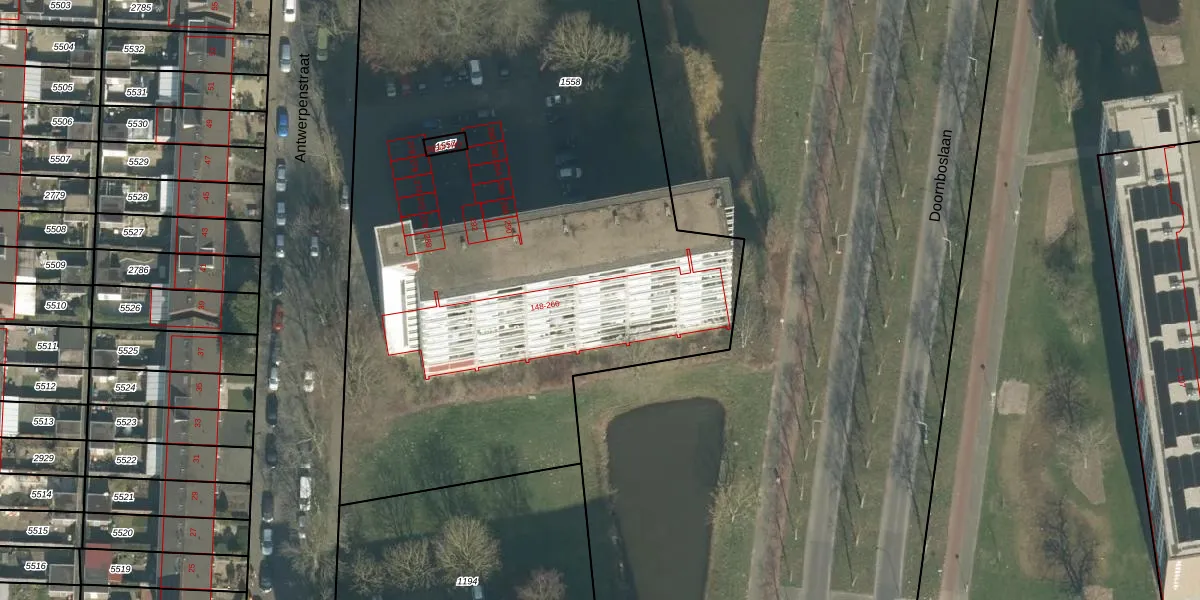 Antwerpenstraat 182 is gelegen op kadastraal perceel BDA00G1558. Deze kadastrale aanduiding is uniek en wordt gebruikt door het Kadaster om eigendomsrechten en andere zakelijke rechten vast te leggen. Het perceel maakt onderdeel uit van de kadastrale gemeente Breda.