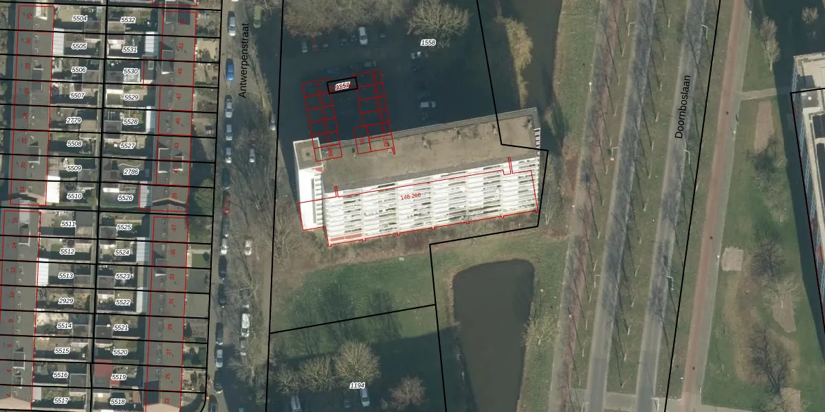 Het perceel waarop Antwerpenstraat 208 staat heeft een oppervlakte van 4502 m². Dit is een zeer groot perceel. De perceeloppervlakte wordt geregistreerd door het Kadaster. Gedetailleerde informatie over de maten van dit perceel kunt u vinden in het rapport Kadastrale kaart met maatvoering van Antwerpenstraat 208.