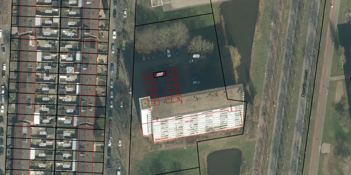 Het perceel waarop Antwerpenstraat 286 staat heeft een oppervlakte van 4502 m². Dit is een zeer groot perceel. De perceeloppervlakte wordt geregistreerd door het Kadaster. Gedetailleerde informatie over de maten van dit perceel kunt u vinden in het rapport Kadastrale kaart met maatvoering van Antwerpenstraat 286.