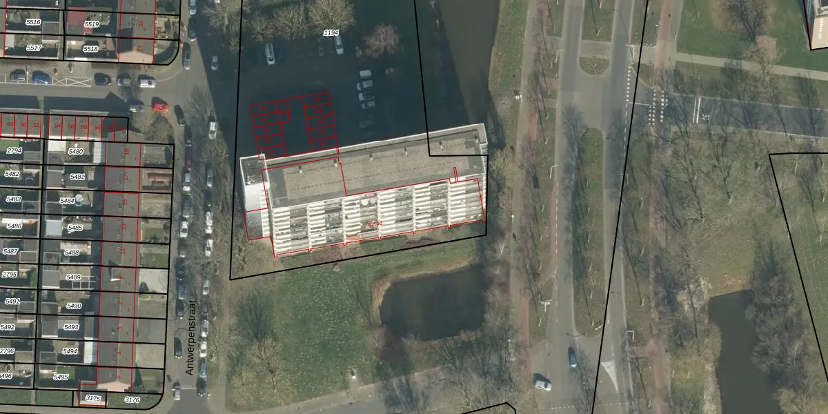 Het perceel waarop Antwerpenstraat 30 staat heeft een oppervlakte van 3534 m². Dit is een zeer groot perceel. De perceeloppervlakte wordt geregistreerd door het Kadaster. Gedetailleerde informatie over de maten van dit perceel kunt u vinden in het rapport Kadastrale kaart met maatvoering van Antwerpenstraat 30.