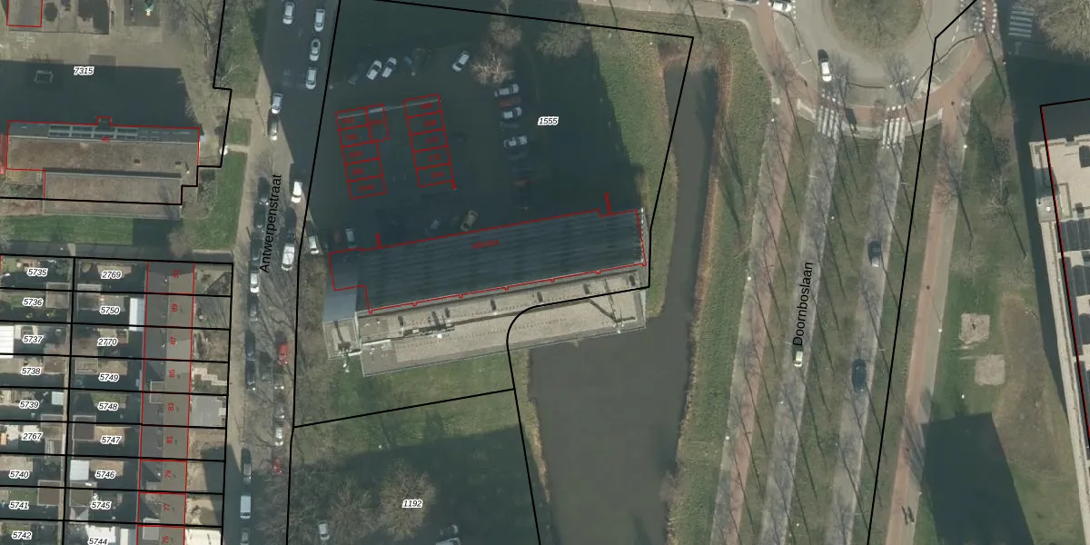 Het perceel waarop Antwerpenstraat 484 staat heeft een oppervlakte van 4190 m². Dit is een zeer groot perceel. De perceeloppervlakte wordt geregistreerd door het Kadaster. Gedetailleerde informatie over de maten van dit perceel kunt u vinden in het rapport Kadastrale kaart met maatvoering van Antwerpenstraat 484.