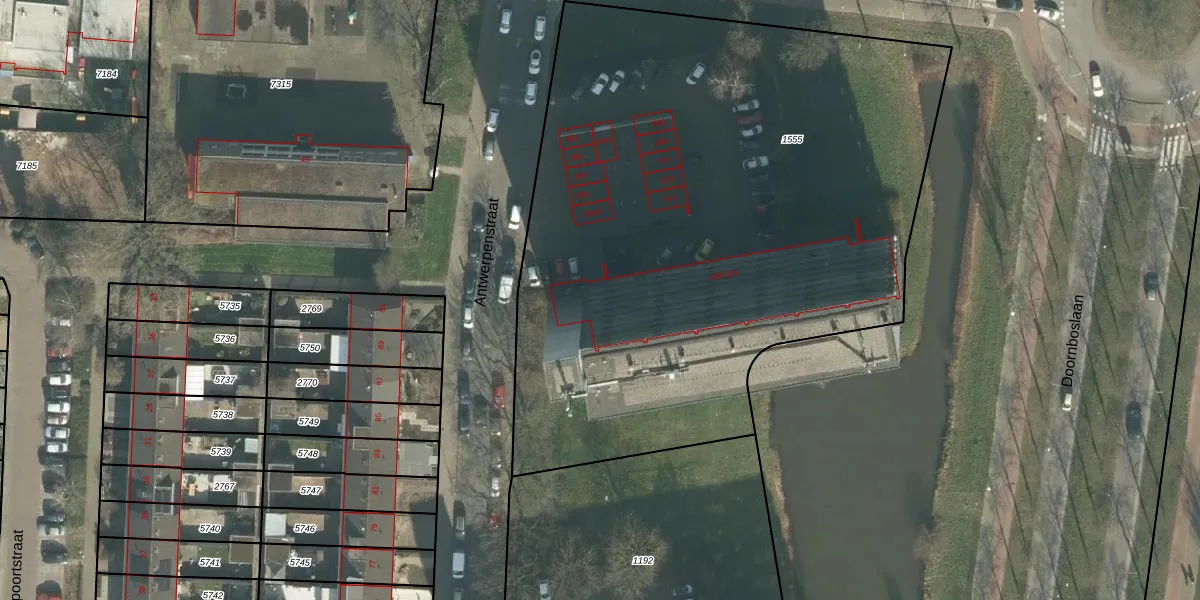 Het perceel waarop Antwerpenstraat 546 staat heeft een oppervlakte van 4190 m². Dit is een zeer groot perceel. De perceeloppervlakte wordt geregistreerd door het Kadaster. Gedetailleerde informatie over de maten van dit perceel kunt u vinden in het rapport Kadastrale kaart met maatvoering van Antwerpenstraat 546.