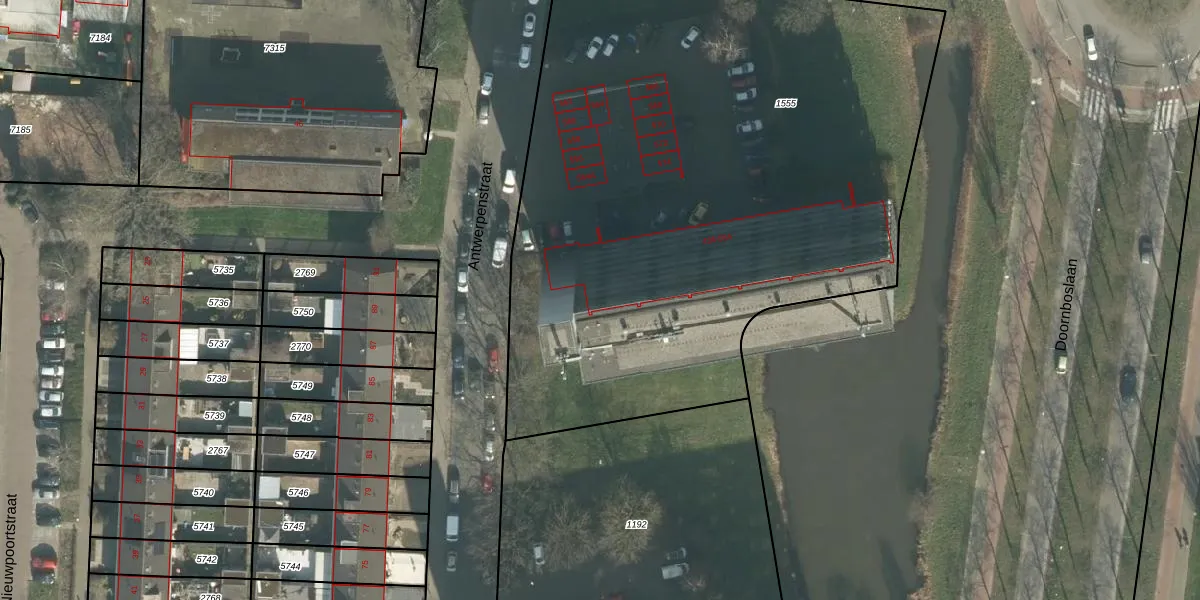 Het perceel waarop Antwerpenstraat 550 staat heeft een oppervlakte van 4190 m². Dit is een zeer groot perceel. De perceeloppervlakte wordt geregistreerd door het Kadaster. Gedetailleerde informatie over de maten van dit perceel kunt u vinden in het rapport Kadastrale kaart met maatvoering van Antwerpenstraat 550.