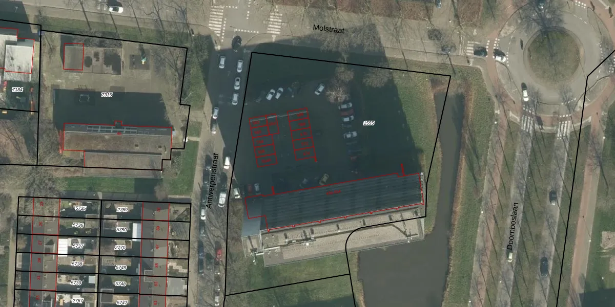 Het perceel waarop Antwerpenstraat 574 staat heeft een oppervlakte van 4190 m². Dit is een zeer groot perceel. De perceeloppervlakte wordt geregistreerd door het Kadaster. Gedetailleerde informatie over de maten van dit perceel kunt u vinden in het rapport Kadastrale kaart met maatvoering van Antwerpenstraat 574.