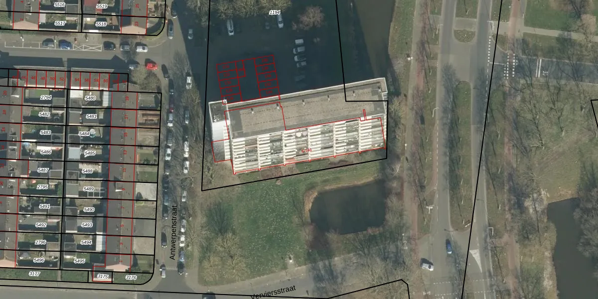 Het perceel waarop Antwerpenstraat 62 staat heeft een oppervlakte van 3534 m². Dit is een zeer groot perceel. De perceeloppervlakte wordt geregistreerd door het Kadaster. Gedetailleerde informatie over de maten van dit perceel kunt u vinden in het rapport Kadastrale kaart met maatvoering van Antwerpenstraat 62.