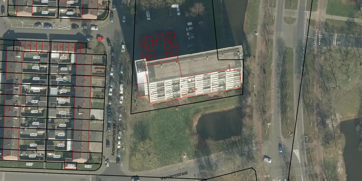 Het perceel waarop Antwerpenstraat 74 staat heeft een oppervlakte van 3534 m². Dit is een zeer groot perceel. De perceeloppervlakte wordt geregistreerd door het Kadaster. Gedetailleerde informatie over de maten van dit perceel kunt u vinden in het rapport Kadastrale kaart met maatvoering van Antwerpenstraat 74.