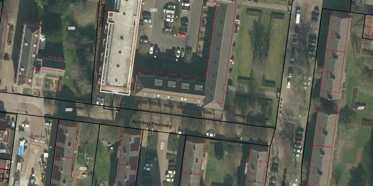 Architect Peutzweg 4 is gelegen op kadastraal perceel PCH00I6114. Deze kadastrale aanduiding is uniek en wordt gebruikt door het Kadaster om eigendomsrechten en andere zakelijke rechten vast te leggen. Het perceel maakt onderdeel uit van de kadastrale gemeente Princenhage.