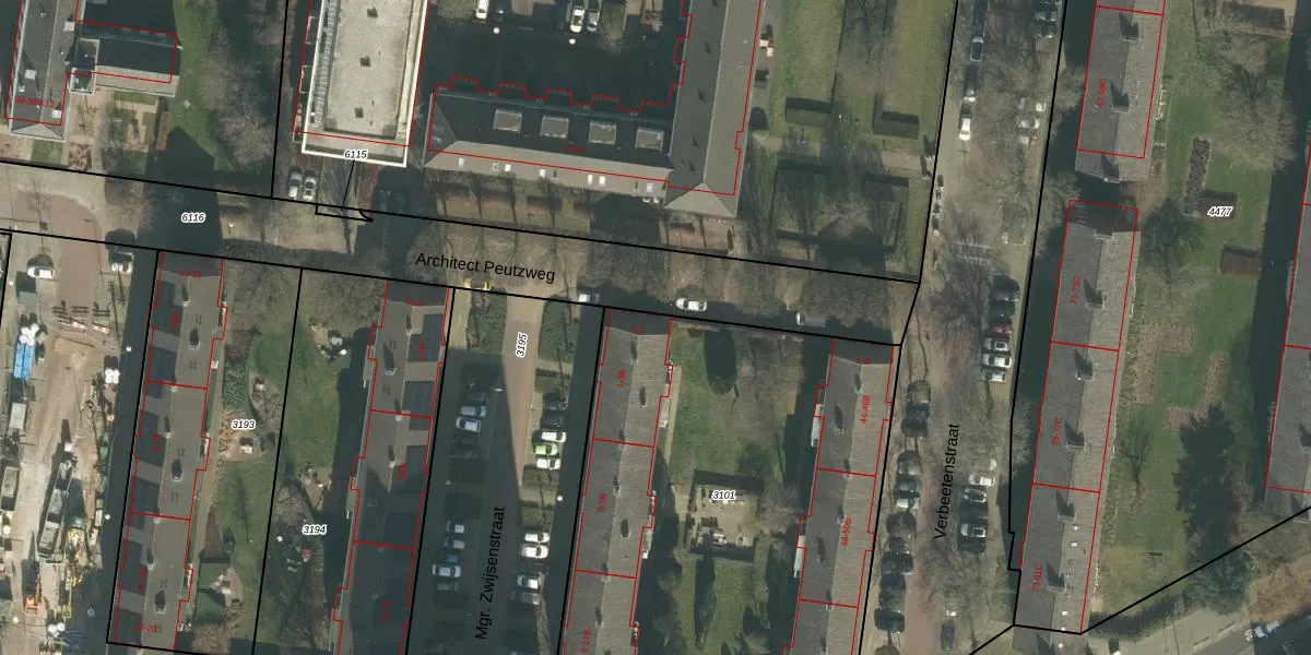 Architect Peutzweg 5 is gelegen op kadastraal perceel PCH00I3101. Deze kadastrale aanduiding is uniek en wordt gebruikt door het Kadaster om eigendomsrechten en andere zakelijke rechten vast te leggen. Het perceel maakt onderdeel uit van de kadastrale gemeente Princenhage.