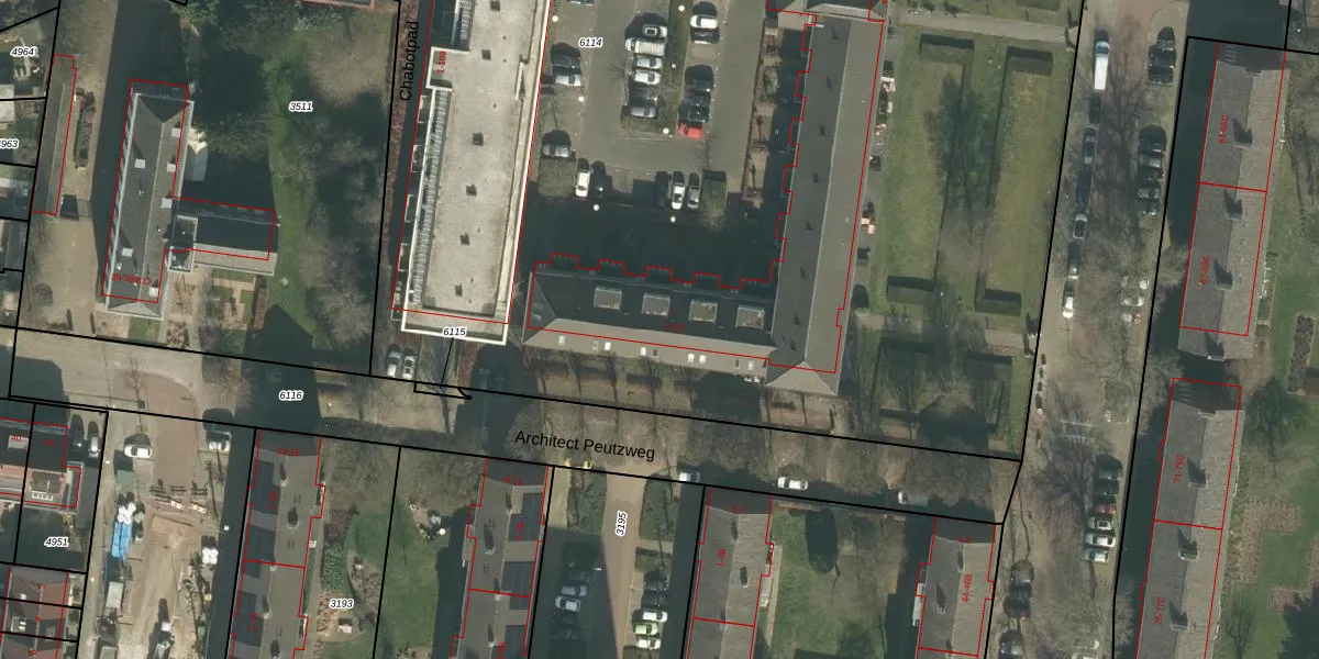 Architect Peutzweg 6 is gelegen op kadastraal perceel PCH00I6114. Deze kadastrale aanduiding is uniek en wordt gebruikt door het Kadaster om eigendomsrechten en andere zakelijke rechten vast te leggen. Het perceel maakt onderdeel uit van de kadastrale gemeente Princenhage.