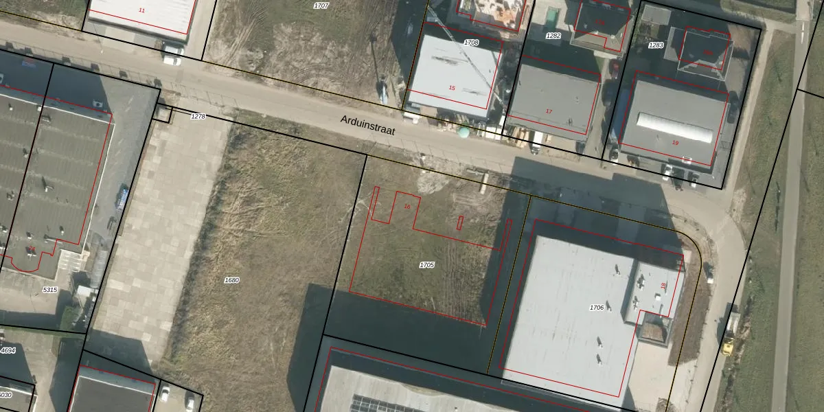 Arduinstraat 16 is gelegen op kadastraal perceel TTR00F1705. Deze kadastrale aanduiding is uniek en wordt gebruikt door het Kadaster om eigendomsrechten en andere zakelijke rechten vast te leggen. Het perceel maakt onderdeel uit van de kadastrale gemeente Teteringen.