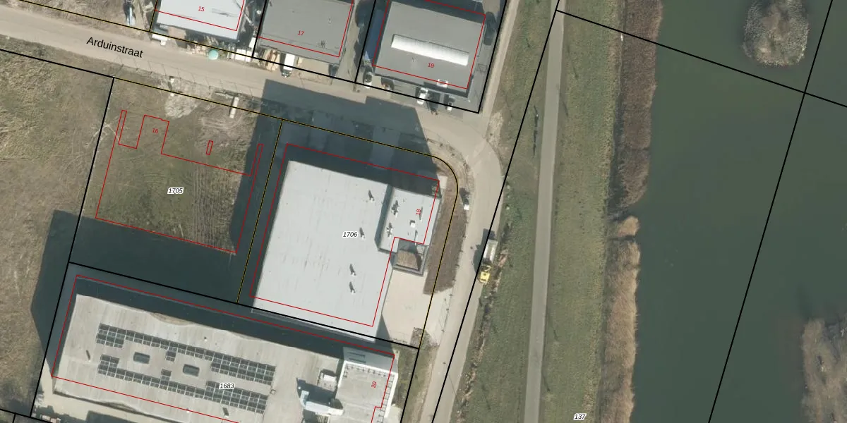 Het perceel waarop Arduinstraat 18 staat heeft een oppervlakte van 1963 m². Dit is een zeer groot perceel. De perceeloppervlakte wordt geregistreerd door het Kadaster. Gedetailleerde informatie over de maten van dit perceel kunt u vinden in het rapport Kadastrale kaart met maatvoering van Arduinstraat 18.