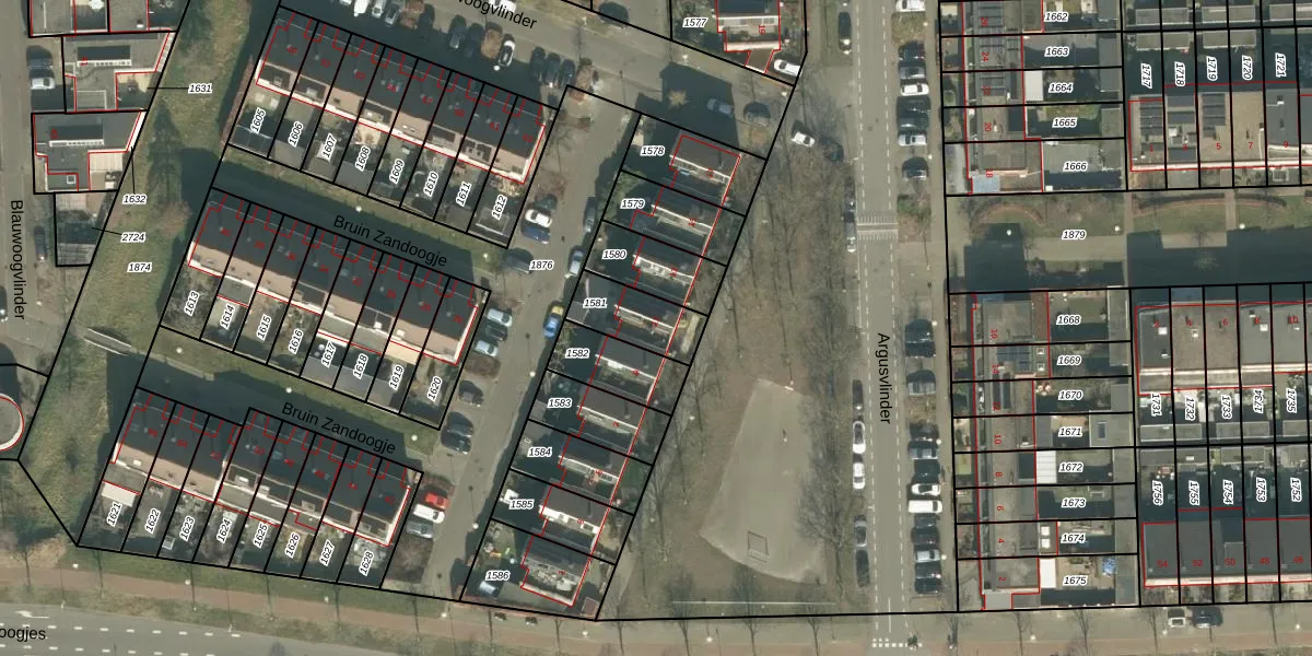 Het perceel waarop Argusvlinder 11 staat heeft een oppervlakte van 166 m². Dit is een middelgroot perceel. De perceeloppervlakte wordt geregistreerd door het Kadaster. Gedetailleerde informatie over de maten van dit perceel kunt u vinden in het rapport Kadastrale kaart met maatvoering van Argusvlinder 11.