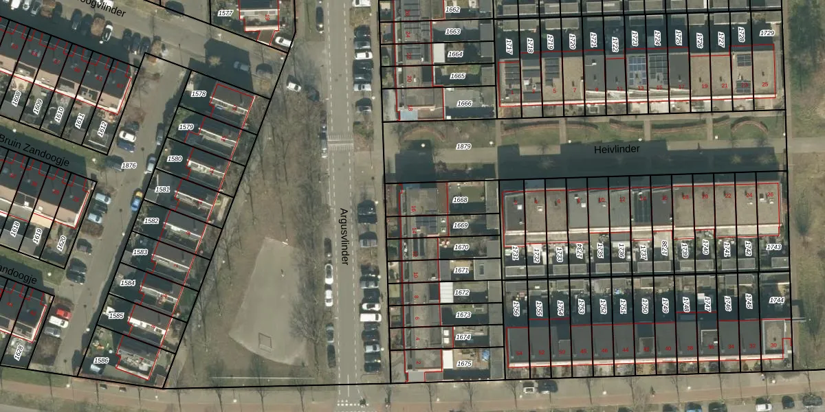 Gebruik de zoekbalk of klik op een perceel voor informatie over de adressen binnen dit perceel.