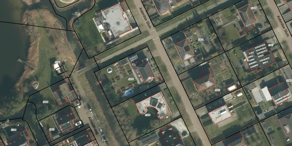 Het perceel waarop Asterdse Sluis 5 staat heeft een oppervlakte van 1090 m². Dit is een zeer groot perceel. De perceeloppervlakte wordt geregistreerd door het Kadaster. Gedetailleerde informatie over de maten van dit perceel kunt u vinden in het rapport Kadastrale kaart met maatvoering van Asterdse Sluis 5.