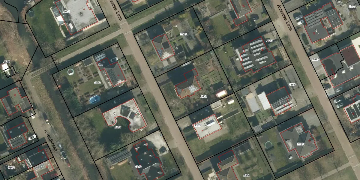 Het perceel waarop Asterdse Sluis 6 staat heeft een oppervlakte van 963 m². Dit is een groot perceel. De perceeloppervlakte wordt geregistreerd door het Kadaster. Gedetailleerde informatie over de maten van dit perceel kunt u vinden in het rapport Kadastrale kaart met maatvoering van Asterdse Sluis 6.