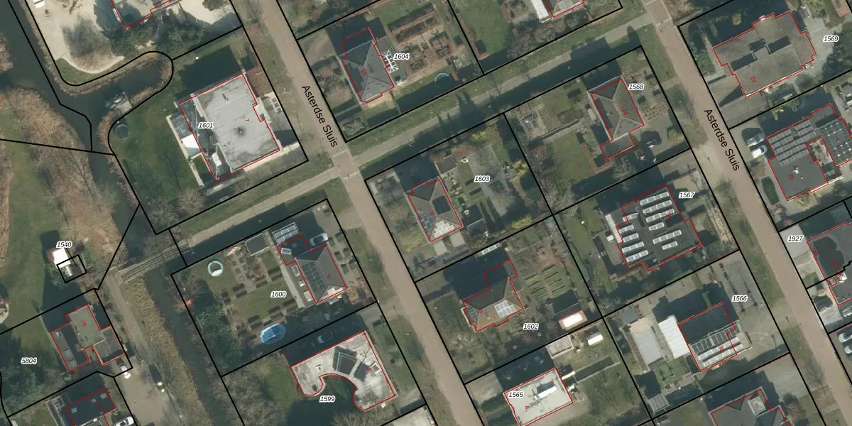 Het perceel waarop Asterdse Sluis 8 staat heeft een oppervlakte van 964 m². Dit is een groot perceel. De perceeloppervlakte wordt geregistreerd door het Kadaster. Gedetailleerde informatie over de maten van dit perceel kunt u vinden in het rapport Kadastrale kaart met maatvoering van Asterdse Sluis 8.