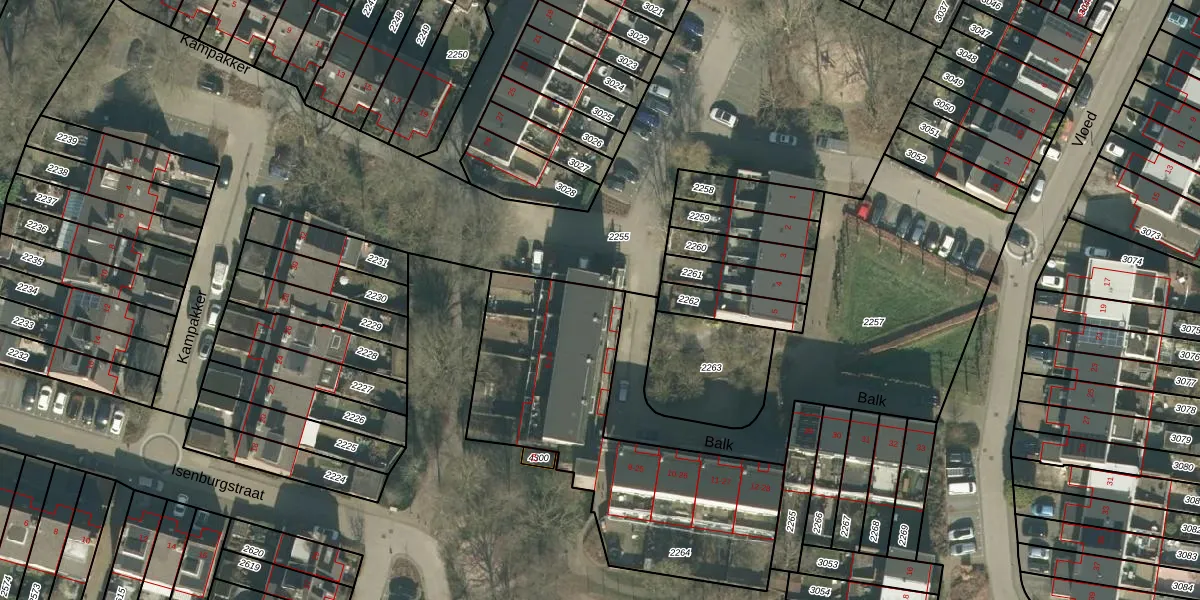 Het perceel waarop Balk 24 staat heeft een oppervlakte van 1295 m². Dit is een zeer groot perceel. De perceeloppervlakte wordt geregistreerd door het Kadaster. Gedetailleerde informatie over de maten van dit perceel kunt u vinden in het rapport Kadastrale kaart met maatvoering van Balk 24.