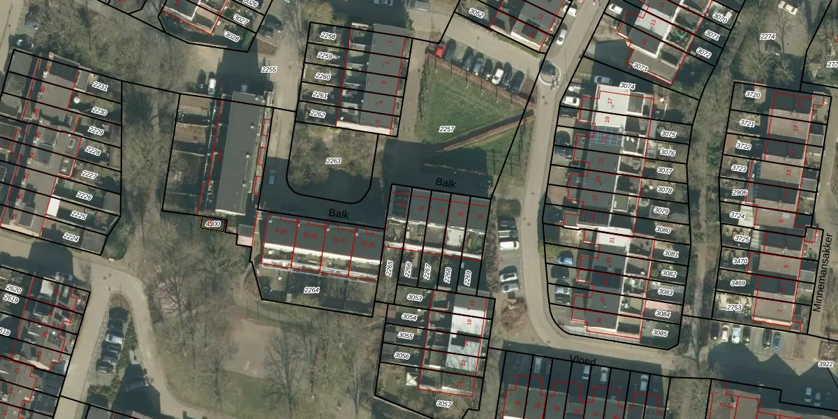 Het perceel waarop Balk 30 staat heeft een oppervlakte van 110 m². Dit is een middelgroot perceel. De perceeloppervlakte wordt geregistreerd door het Kadaster. Gedetailleerde informatie over de maten van dit perceel kunt u vinden in het rapport Kadastrale kaart met maatvoering van Balk 30.