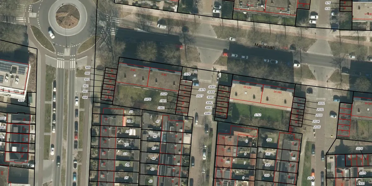 Gebruik de zoekbalk of klik op een perceel voor informatie over de adressen binnen dit perceel.