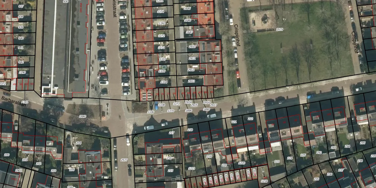 Het perceel waarop Barbaralaan 83 staat heeft een oppervlakte van 20 m². Dit is een klein perceel. De perceeloppervlakte wordt geregistreerd door het Kadaster. Gedetailleerde informatie over de maten van dit perceel kunt u vinden in het rapport Kadastrale kaart met maatvoering van Barbaralaan 83.