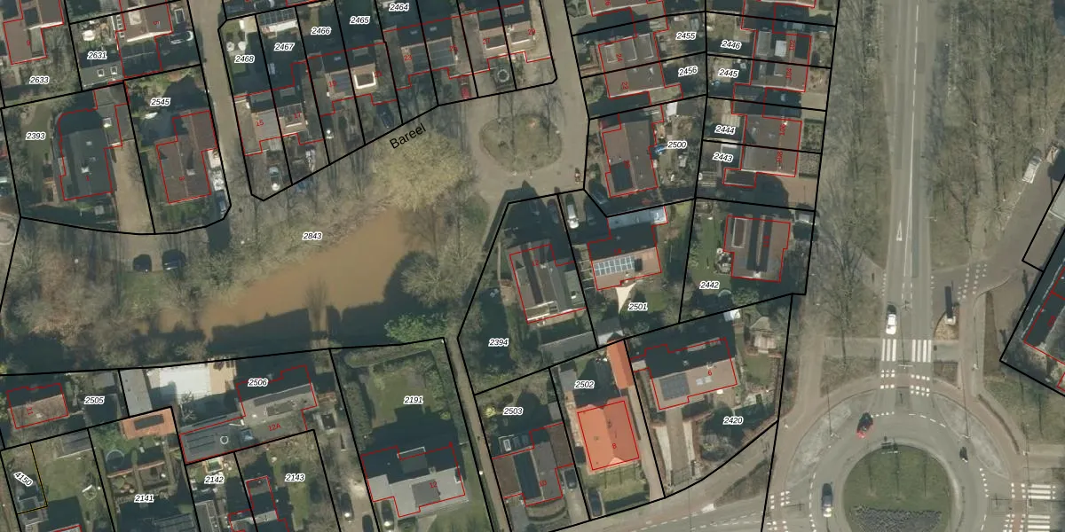 Het perceel waarop Bareel 12 staat heeft een oppervlakte van 629 m². Dit is een groot perceel. De perceeloppervlakte wordt geregistreerd door het Kadaster. Gedetailleerde informatie over de maten van dit perceel kunt u vinden in het rapport Kadastrale kaart met maatvoering van Bareel 12.