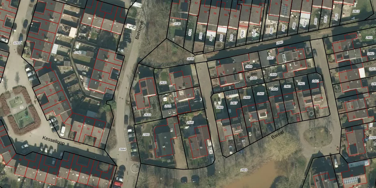 Gebruik de zoekbalk of klik op een perceel voor informatie over de adressen binnen dit perceel.