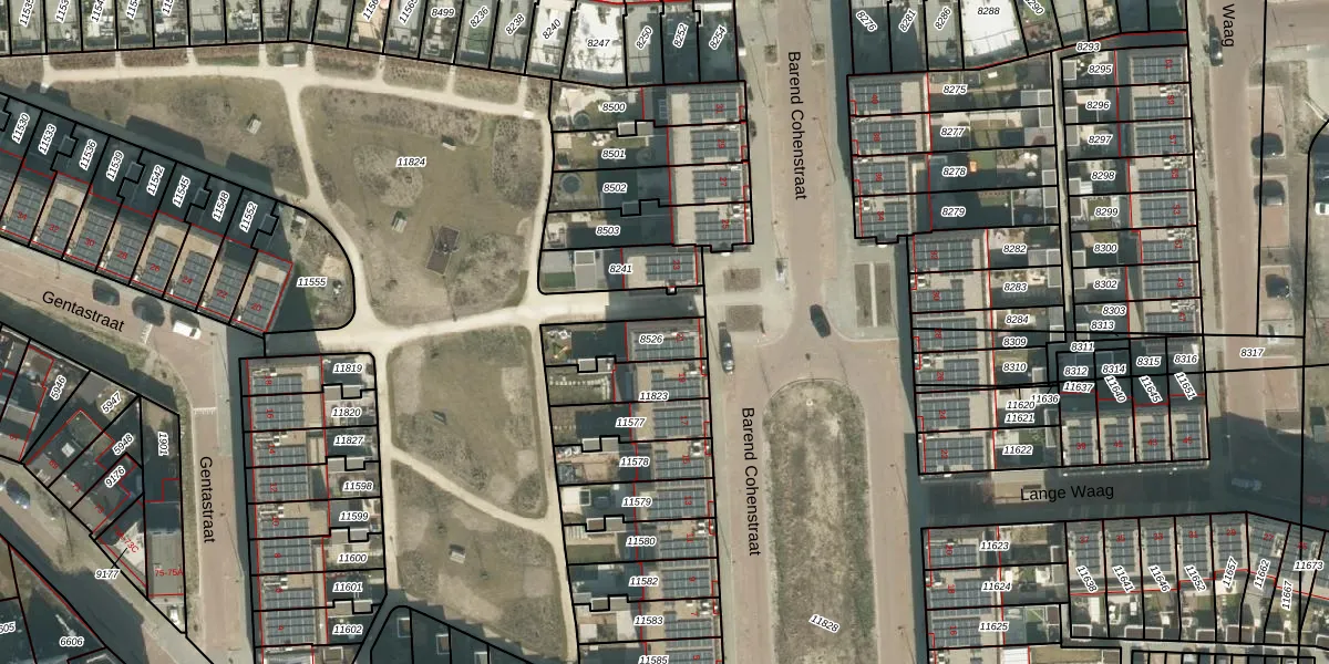 Gebruik de zoekbalk of klik op een perceel voor informatie over de adressen binnen dit perceel.
