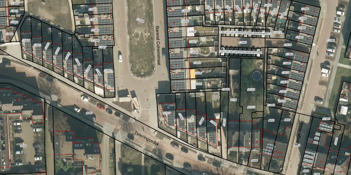 Gebruik de zoekbalk of klik op een perceel voor informatie over de adressen binnen dit perceel.
