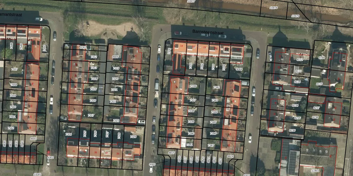 Barnsteenstraat 12 is gelegen op kadastraal perceel BDA00D7336. Deze kadastrale aanduiding is uniek en wordt gebruikt door het Kadaster om eigendomsrechten en andere zakelijke rechten vast te leggen. Het perceel maakt onderdeel uit van de kadastrale gemeente Breda.