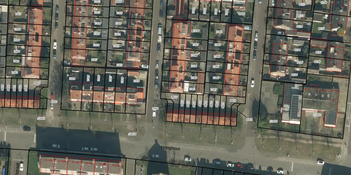 Gebruik de zoekbalk of klik op een perceel voor informatie over de adressen binnen dit perceel.
