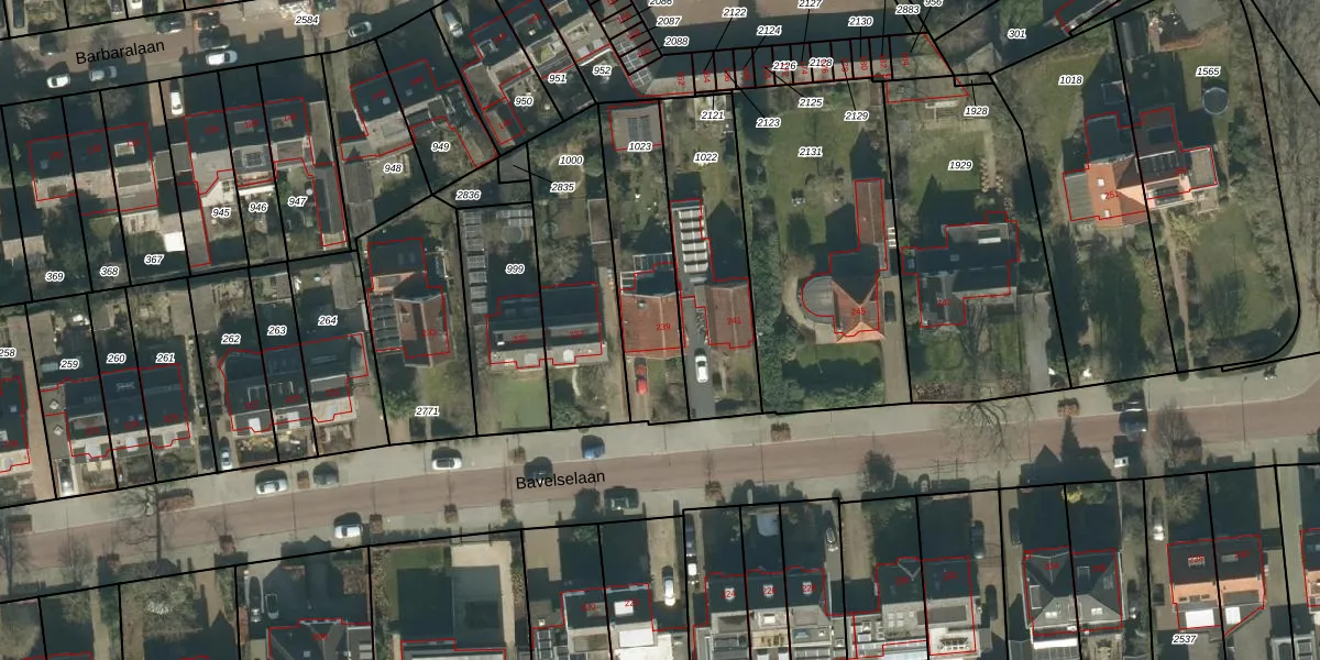 Bavelselaan 239 is gelegen op kadastraal perceel GNK02M1023. Deze kadastrale aanduiding is uniek en wordt gebruikt door het Kadaster om eigendomsrechten en andere zakelijke rechten vast te leggen. Het perceel maakt onderdeel uit van de kadastrale gemeente Ginneken.