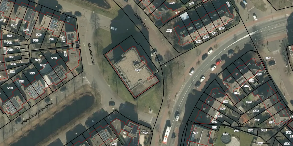 Beatrixstraat 46 is gelegen op kadastraal perceel BDA00E7287. Deze kadastrale aanduiding is uniek en wordt gebruikt door het Kadaster om eigendomsrechten en andere zakelijke rechten vast te leggen. Het perceel maakt onderdeel uit van de kadastrale gemeente Breda.