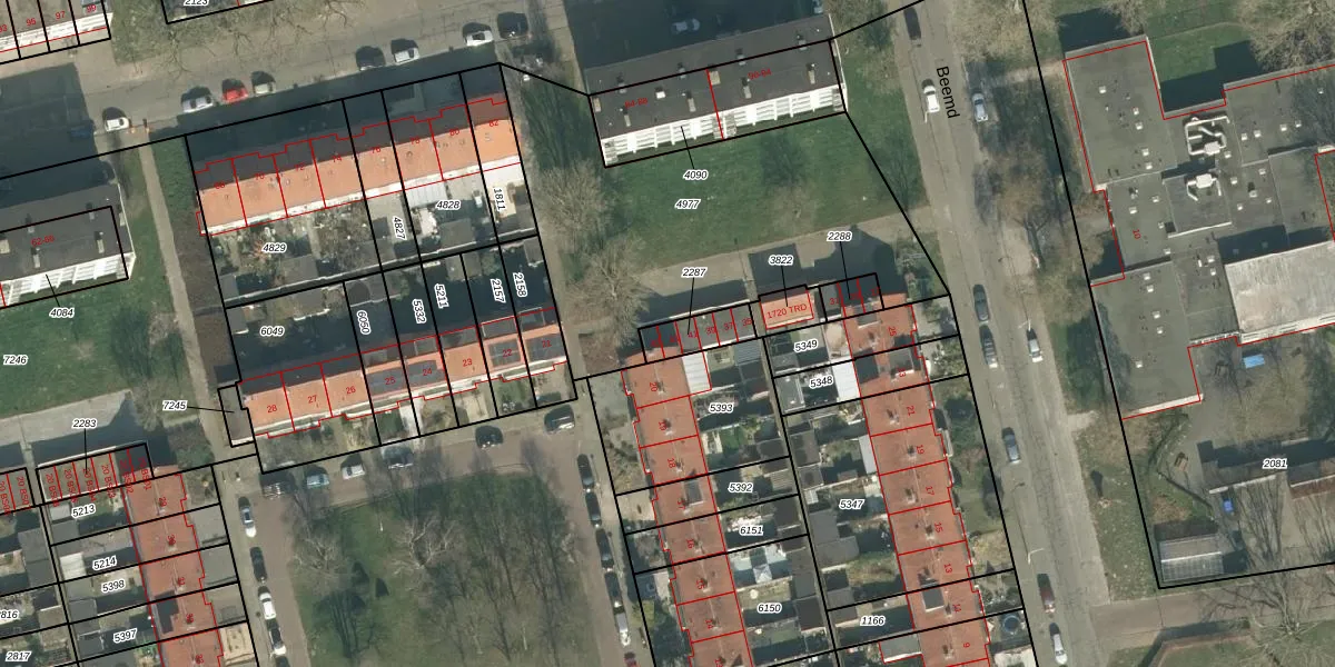 Het perceel waarop Beemd 43 staat heeft een oppervlakte van 90 m². Dit is een klein perceel. De perceeloppervlakte wordt geregistreerd door het Kadaster. Gedetailleerde informatie over de maten van dit perceel kunt u vinden in het rapport Kadastrale kaart met maatvoering van Beemd 43.