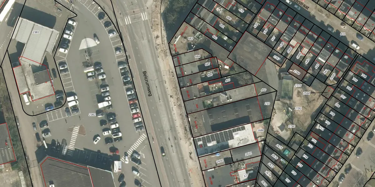 Belcrumweg 38 is gelegen op kadastraal perceel BDA00C455. Deze kadastrale aanduiding is uniek en wordt gebruikt door het Kadaster om eigendomsrechten en andere zakelijke rechten vast te leggen. Het perceel maakt onderdeel uit van de kadastrale gemeente Breda.