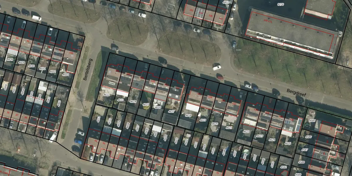 Bergdreef 114 is gelegen op kadastraal perceel BDA00H4617. Deze kadastrale aanduiding is uniek en wordt gebruikt door het Kadaster om eigendomsrechten en andere zakelijke rechten vast te leggen. Het perceel maakt onderdeel uit van de kadastrale gemeente Breda.