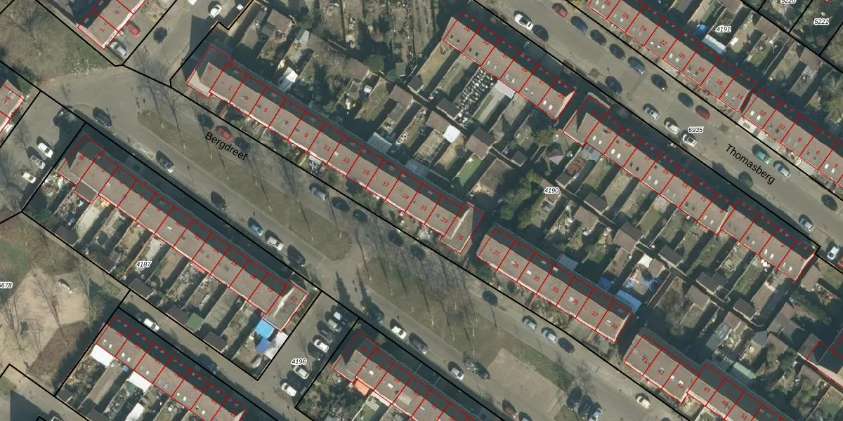 Bergdreef 21 is gelegen op kadastraal perceel BDA00H4190. Deze kadastrale aanduiding is uniek en wordt gebruikt door het Kadaster om eigendomsrechten en andere zakelijke rechten vast te leggen. Het perceel maakt onderdeel uit van de kadastrale gemeente Breda.