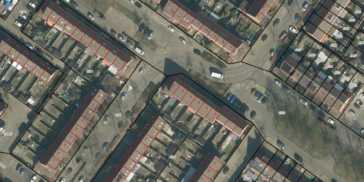 Bergdreef 44 is gelegen op kadastraal perceel BDA00H4189. Deze kadastrale aanduiding is uniek en wordt gebruikt door het Kadaster om eigendomsrechten en andere zakelijke rechten vast te leggen. Het perceel maakt onderdeel uit van de kadastrale gemeente Breda.