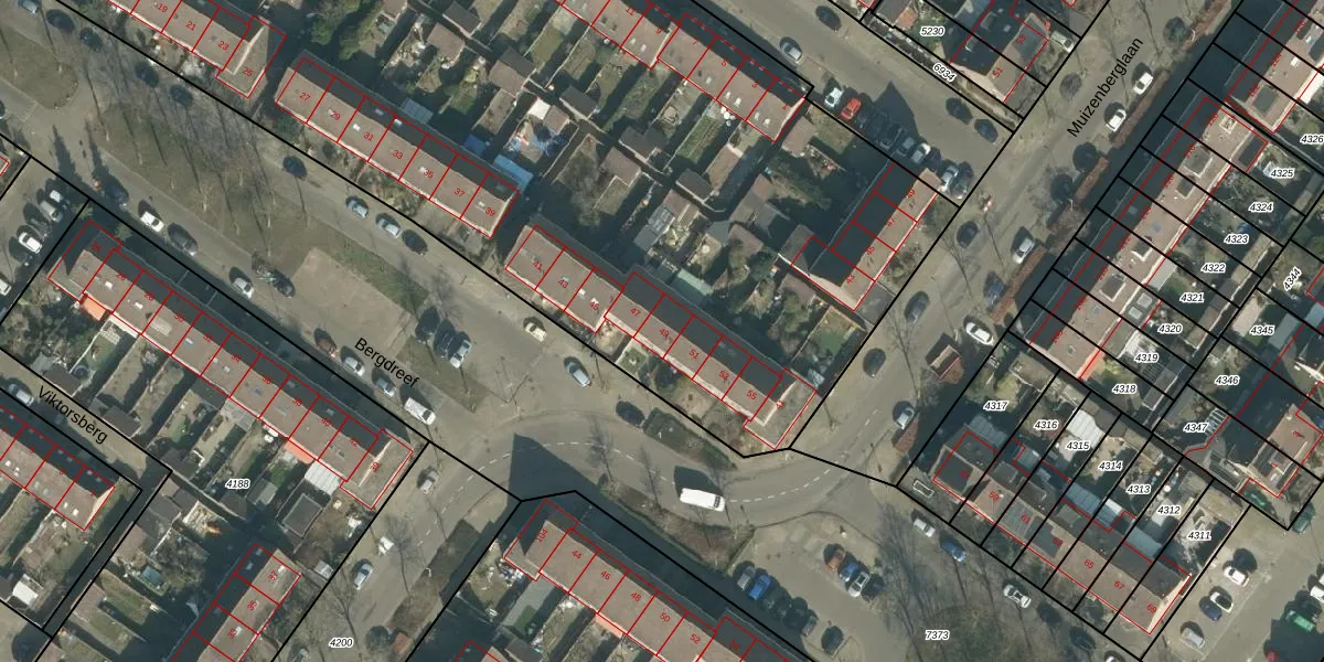 Het perceel waarop Bergdreef 49 staat heeft een oppervlakte van 9391 m². Dit is een zeer groot perceel. De perceeloppervlakte wordt geregistreerd door het Kadaster. Gedetailleerde informatie over de maten van dit perceel kunt u vinden in het rapport Kadastrale kaart met maatvoering van Bergdreef 49.