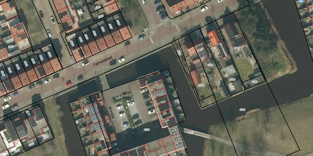Het perceel waarop Bernini 22 staat heeft een oppervlakte van 2820 m². Dit is een zeer groot perceel. De perceeloppervlakte wordt geregistreerd door het Kadaster. Gedetailleerde informatie over de maten van dit perceel kunt u vinden in het rapport Kadastrale kaart met maatvoering van Bernini 22.