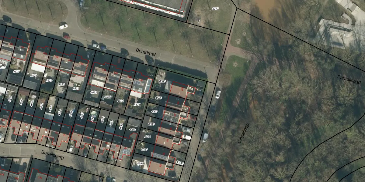 Bertelsberg 101 is gelegen op kadastraal perceel BDA00H4585. Deze kadastrale aanduiding is uniek en wordt gebruikt door het Kadaster om eigendomsrechten en andere zakelijke rechten vast te leggen. Het perceel maakt onderdeel uit van de kadastrale gemeente Breda.
