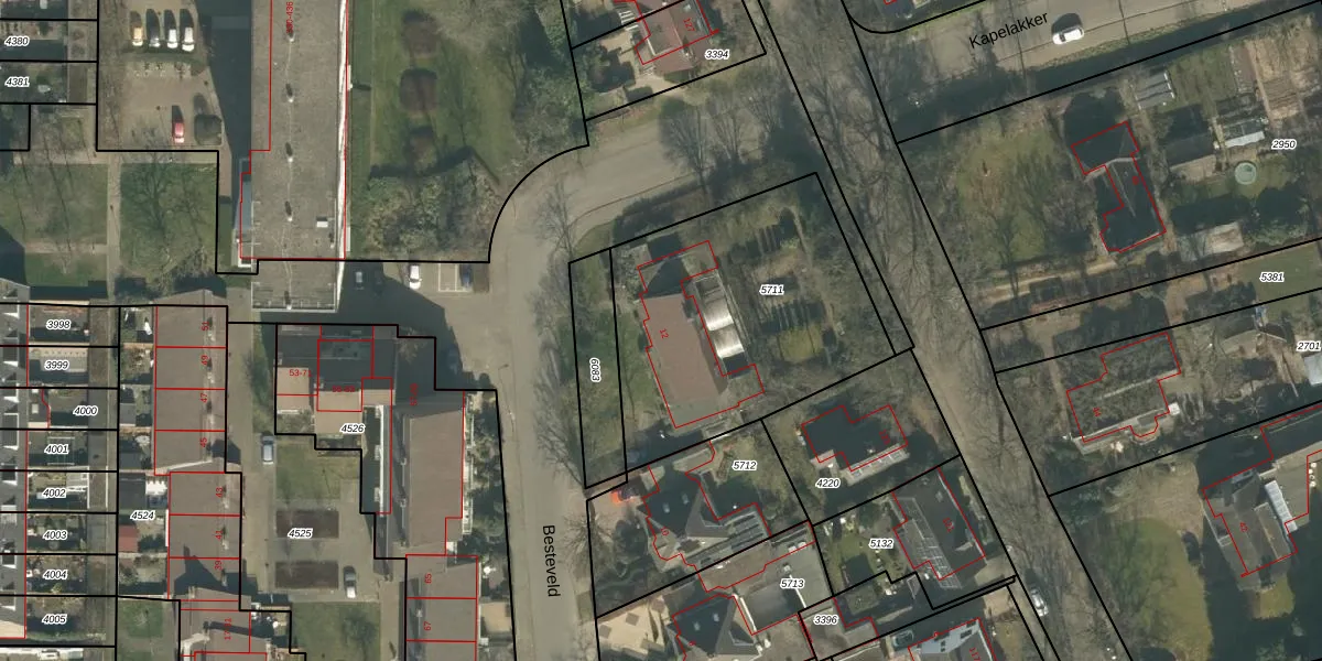 Besteveld 12 is gelegen op kadastraal perceel GNK02A5711. Deze kadastrale aanduiding is uniek en wordt gebruikt door het Kadaster om eigendomsrechten en andere zakelijke rechten vast te leggen. Het perceel maakt onderdeel uit van de kadastrale gemeente Ginneken.