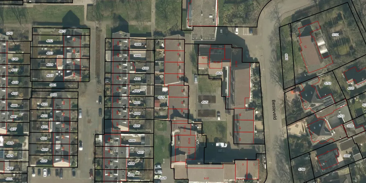 Besteveld 43 is gelegen op kadastraal perceel GNK02A4524. Deze kadastrale aanduiding is uniek en wordt gebruikt door het Kadaster om eigendomsrechten en andere zakelijke rechten vast te leggen. Het perceel maakt onderdeel uit van de kadastrale gemeente Ginneken.
