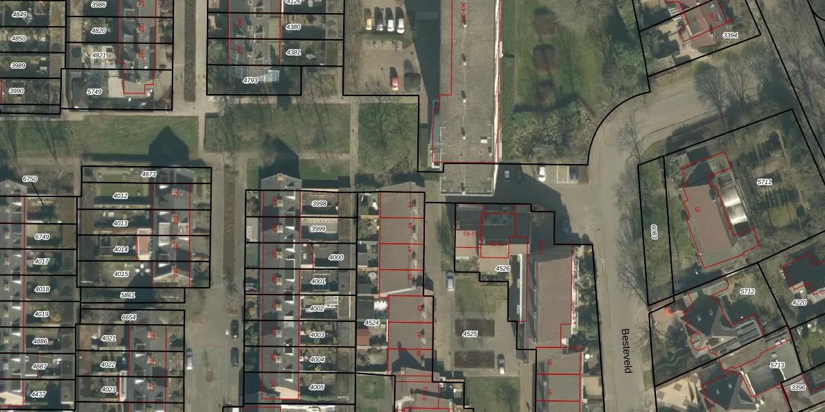 Het perceel waarop Besteveld 51 staat heeft een oppervlakte van 2080 m². Dit is een zeer groot perceel. De perceeloppervlakte wordt geregistreerd door het Kadaster. Gedetailleerde informatie over de maten van dit perceel kunt u vinden in het rapport Kadastrale kaart met maatvoering van Besteveld 51.