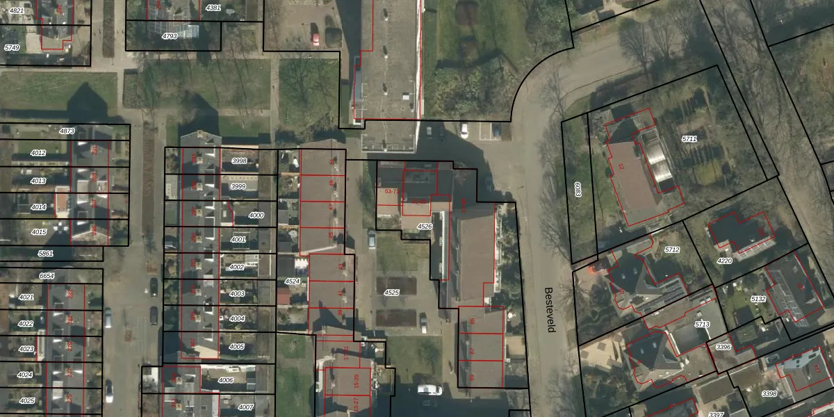 Besteveld 55 is gelegen op kadastraal perceel GNK02A4526. Deze kadastrale aanduiding is uniek en wordt gebruikt door het Kadaster om eigendomsrechten en andere zakelijke rechten vast te leggen. Het perceel maakt onderdeel uit van de kadastrale gemeente Ginneken.