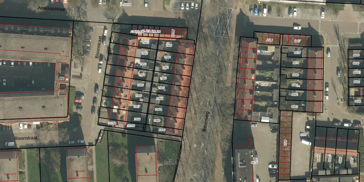 Gebruik de zoekbalk of klik op een perceel voor informatie over de adressen binnen dit perceel.