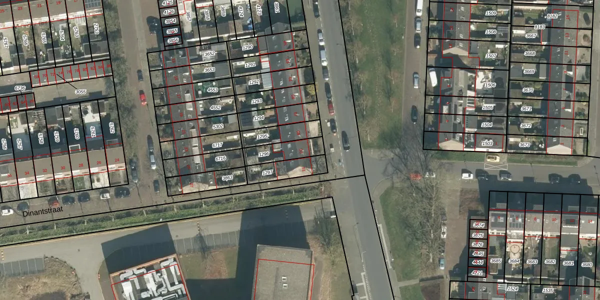 Gebruik de zoekbalk of klik op een perceel voor informatie over de adressen binnen dit perceel.