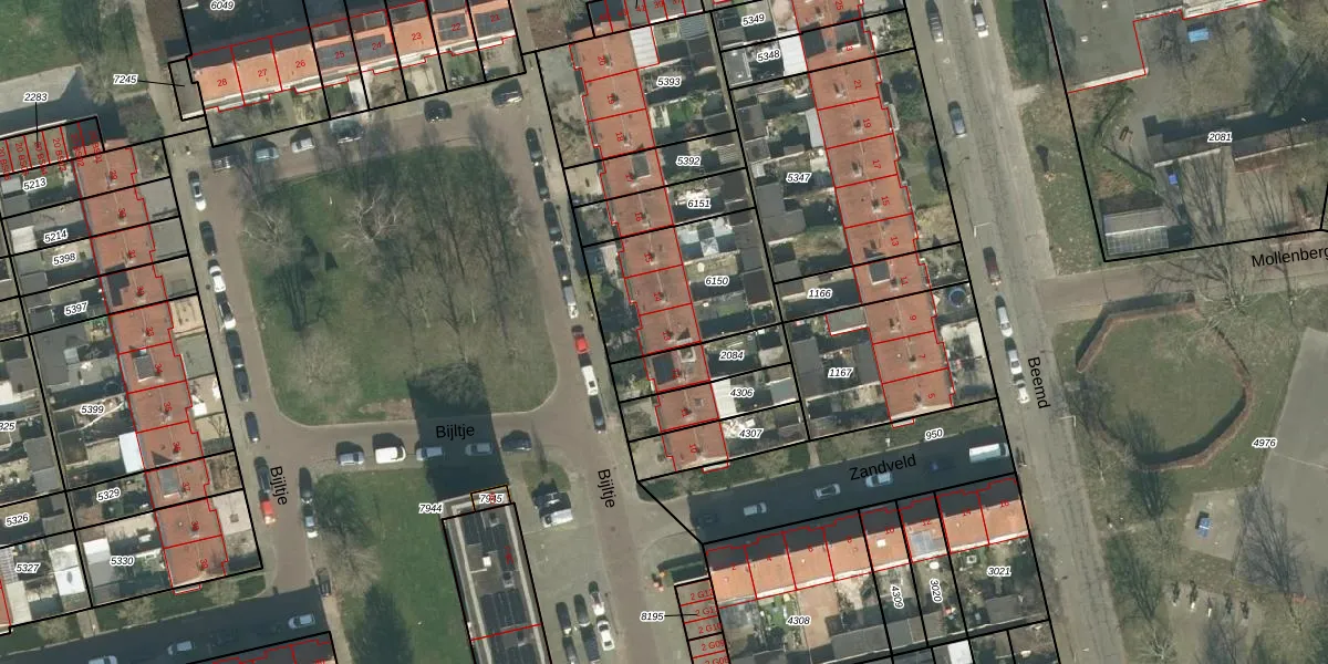 Het perceel waarop Bijltje 13 staat heeft een oppervlakte van 483 m². Dit is een groot perceel. De perceeloppervlakte wordt geregistreerd door het Kadaster. Gedetailleerde informatie over de maten van dit perceel kunt u vinden in het rapport Kadastrale kaart met maatvoering van Bijltje 13.